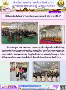 สรจ.ลำปาง พิธีทำบุญเนื่องในวันคล้ายวันสถาปนา มณฑลทหารบกที่ 32 ครบรอบปีที่ 67