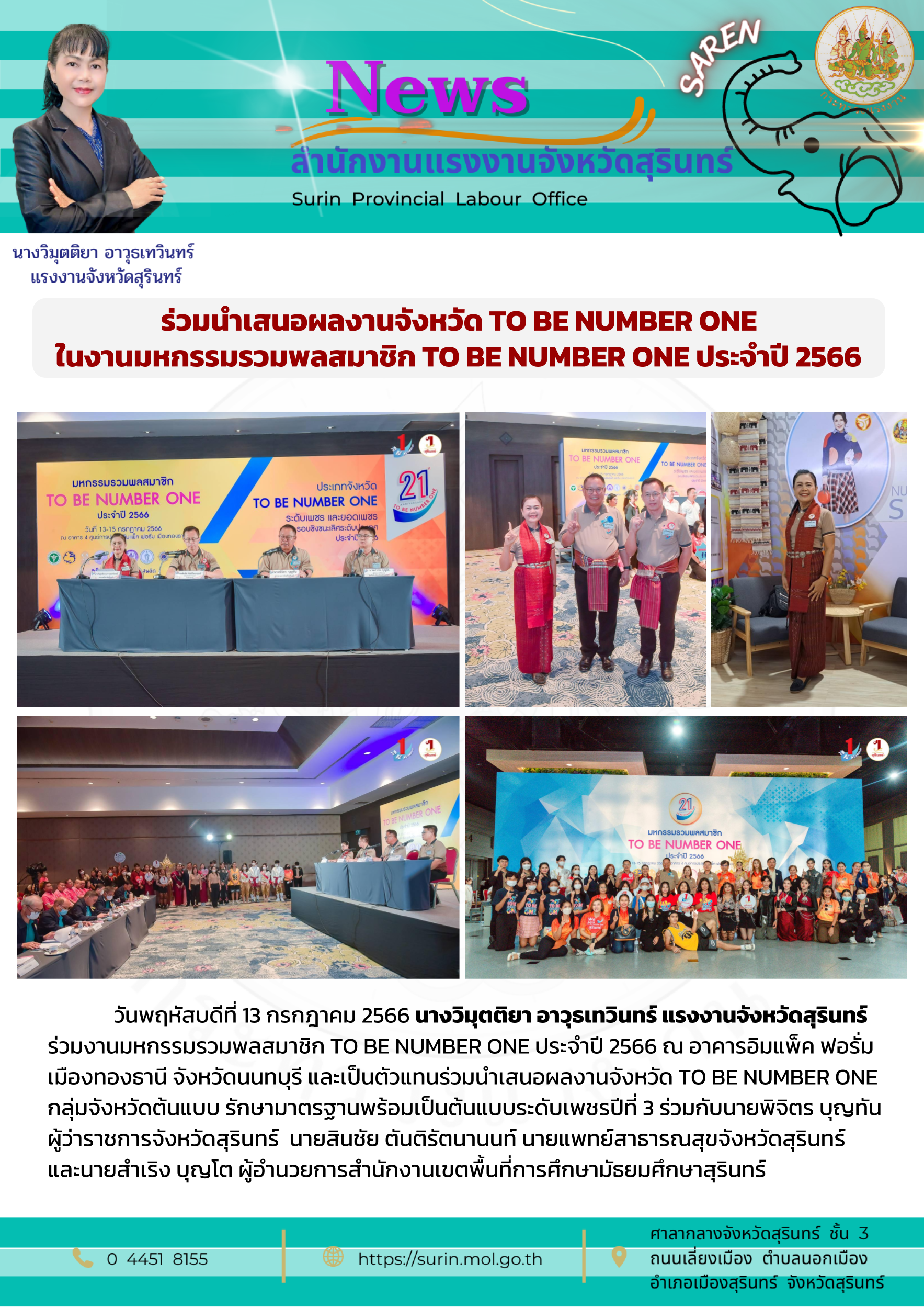 สรจ.สุรินทร์ ร่วมนำเสนอผลงานจังหวัด TO BE NUMBER ONE ในงานมหกรรมรวมพลสมาชิก TO BE NUMBER ONE ประจำปี 2566