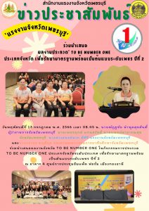 สรจ.เพชรบุรี ร่วมนำเสนอ ผลงานประกวด TO BE NUMBER ONE ประเภทจังหวัด เพื่อรักษามาตรฐานพร้อมเป็นต้นแบบระดับเพชร ปีที่ 2