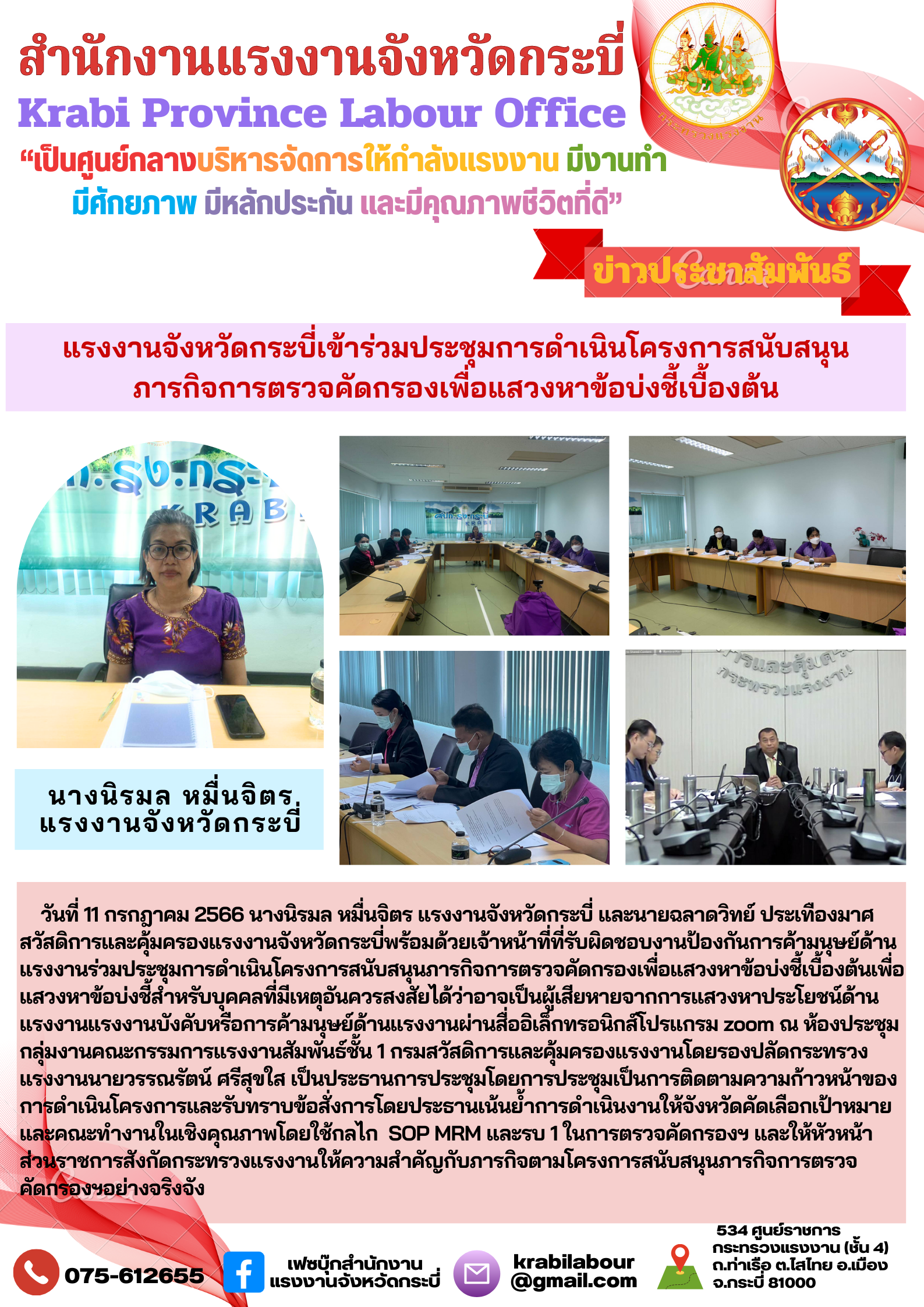 สรจ.กระบี่ เข้าร่วมประชุมการดำเนินโครงการสนับสนุนภารกิจการตรวจคัดกรองเพื่อแสวงหาข้อบงชี้เบื้องต้น