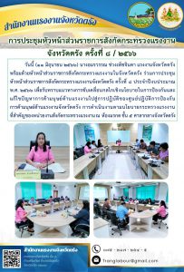 สรจ.ตรัง พร้อมด้วยหัวหน้าส่วนราชการสังกัดกระทรวงแรงงานในจังหวัดตรัง ร่วมการประชุมหัวหน้าส่วนราชการสังกัดกระทรวงแรงงานจังหวัดตรัง ครั้งที่ 8 ประจำปีงบประมาณ พ.ศ. 2566