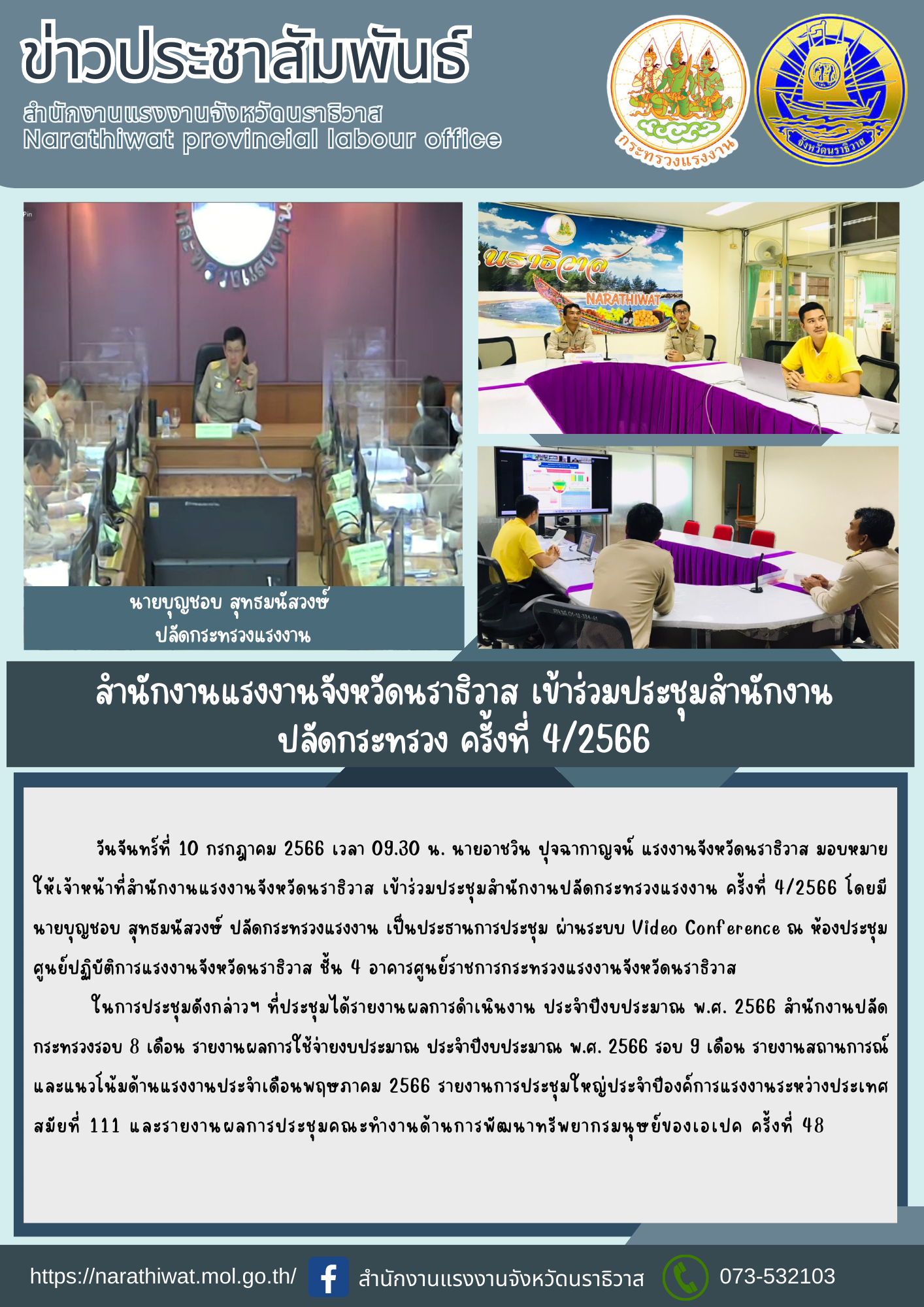 สรจ.นครศรีธรรมราช เข้าร่วมการประชุมสำนักงานปลัดกระทรวงแรงงาน ครั้งที่ 4/2566