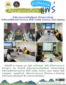 สำนักงานแรงงานจังหวัดแพร่ เข้าร่วมการประชุม สำนักงานปลัดกระทรวงแรงงาน ครั้งที่ 4/2566 ผ่านระบบ Zoom Meeting