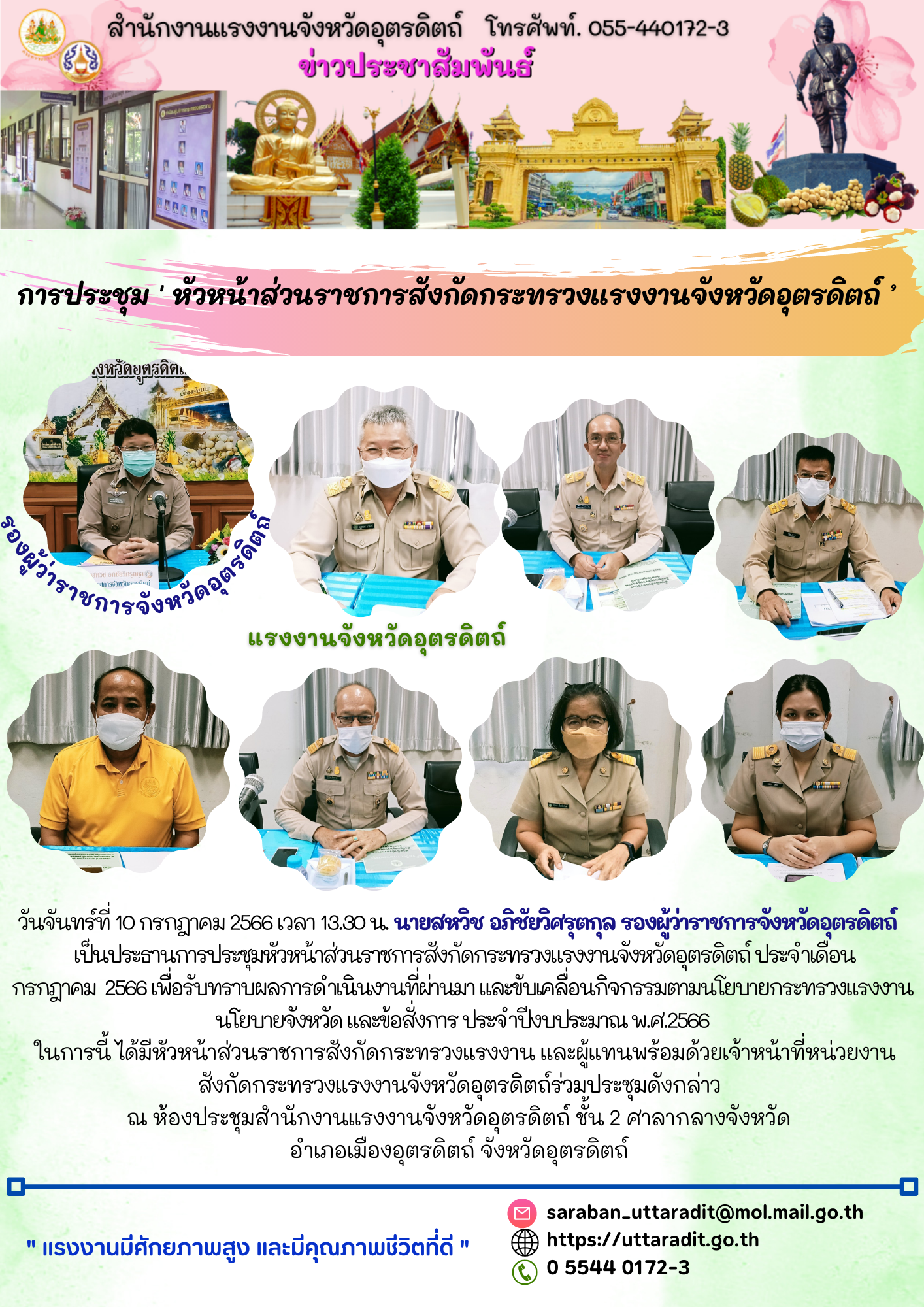 สรจ.อต. จัดการประชุม ‘ หัวหน้าส่วนราชการสังกัดกระทรวงแรงงานจังหวัดอุตรดิตถ์ ’ ประจำเดือนกรกฎาคม 2566