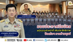 ก.แรงงาน มอบประกาศนียบัตรเจ้าหน้าที่ป้องกันและปราบปรามการค้ามนุษย์ รุ่นที่ 6 นำนโยบายสู่การปฏิบัติอย่างมีประสิทธิภาพ/MOL Awards Certificates to Anti-Human Trafficking Officers, Class 6, to Put Policy into Practice Effectively