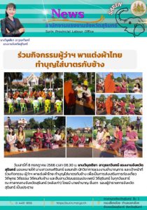 สรจ.สุรินทร์ ร่วมกิจกรรมผู้ว่าฯ พาแต่งผ้าไทย ทำบุญใส่บาตรกับช้าง