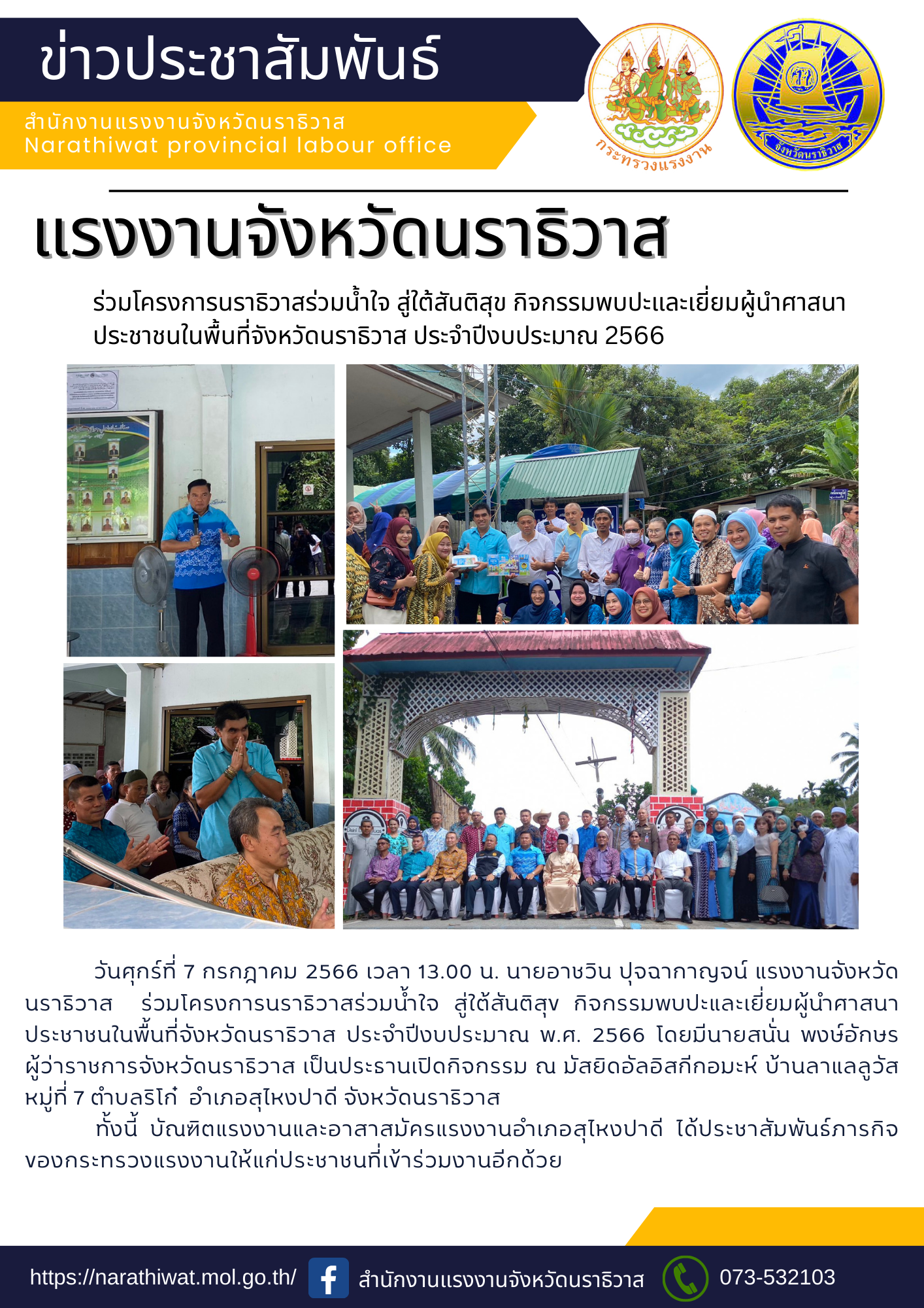 สรจ.นราธิวาส ร่วมโครงการนราธิวาสร่วมน้ำใจ สู่ใต้สันติสุข กิจกรรมพบปะและเยี่ยมผู้นำศาสนา ประชาชนในพื้นที่จังหวัดนราธิวาส ประจำปีงบประมาณ 2566