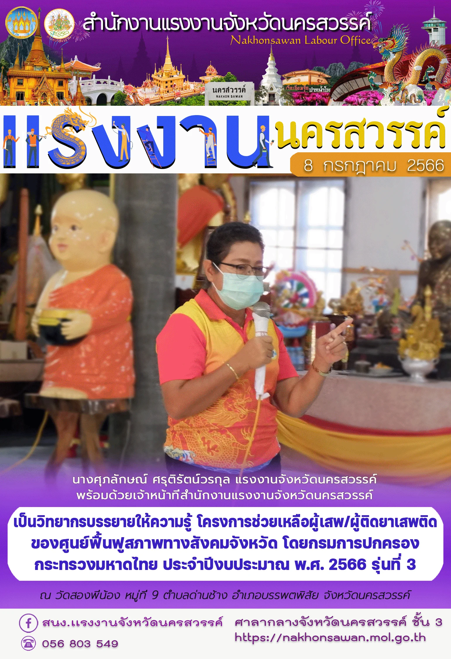 สรจ.นครสวรรค์ เป็นวิทยากรบรรยายให้ความรู้ โครงการช่วยเหลือผู้เสพ/ผู้ติดยาเสพติด ของศูนย์ฟื้นฟูสภาพทางสังคมจังหวัด โดยกรมการปกครอง กระทรวงมหาดไทย ประจำปีงบประมาณ พ.ศ. 2566 รุ่นที่ 3