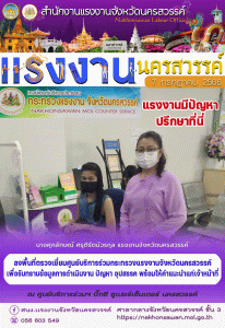 สรจ.นครสวรรค์ ลงพื้นที่ตรวจเยี่ยมศูนย์บริการร่วมกระทรวงแรงงานจังหวัดนครสวรรค์ เพื่อรับทราบข้อมูลการดำเนินงาน ปัญหา อุปสรรค พร้อมให้คำแนะนำแก่เจ้าหน้าที่
