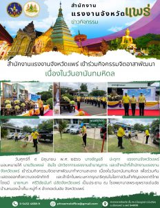 สำนักงานแรงงานจังหวัดแพร่ เข้าร่วมกิจกรรมจิตอาสาพัฒนา เนื่องในวันอานันทมหิดล