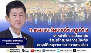 ก.แรงงาน มุ่งลดอุบัติเหตุจากการทำงานก่อสร้าง ดึงนายจ้าง ลูกจ้างและเจ้าหน้าที่ความปลอดภัยร่วมสร้างมาตรการป้องกัน
