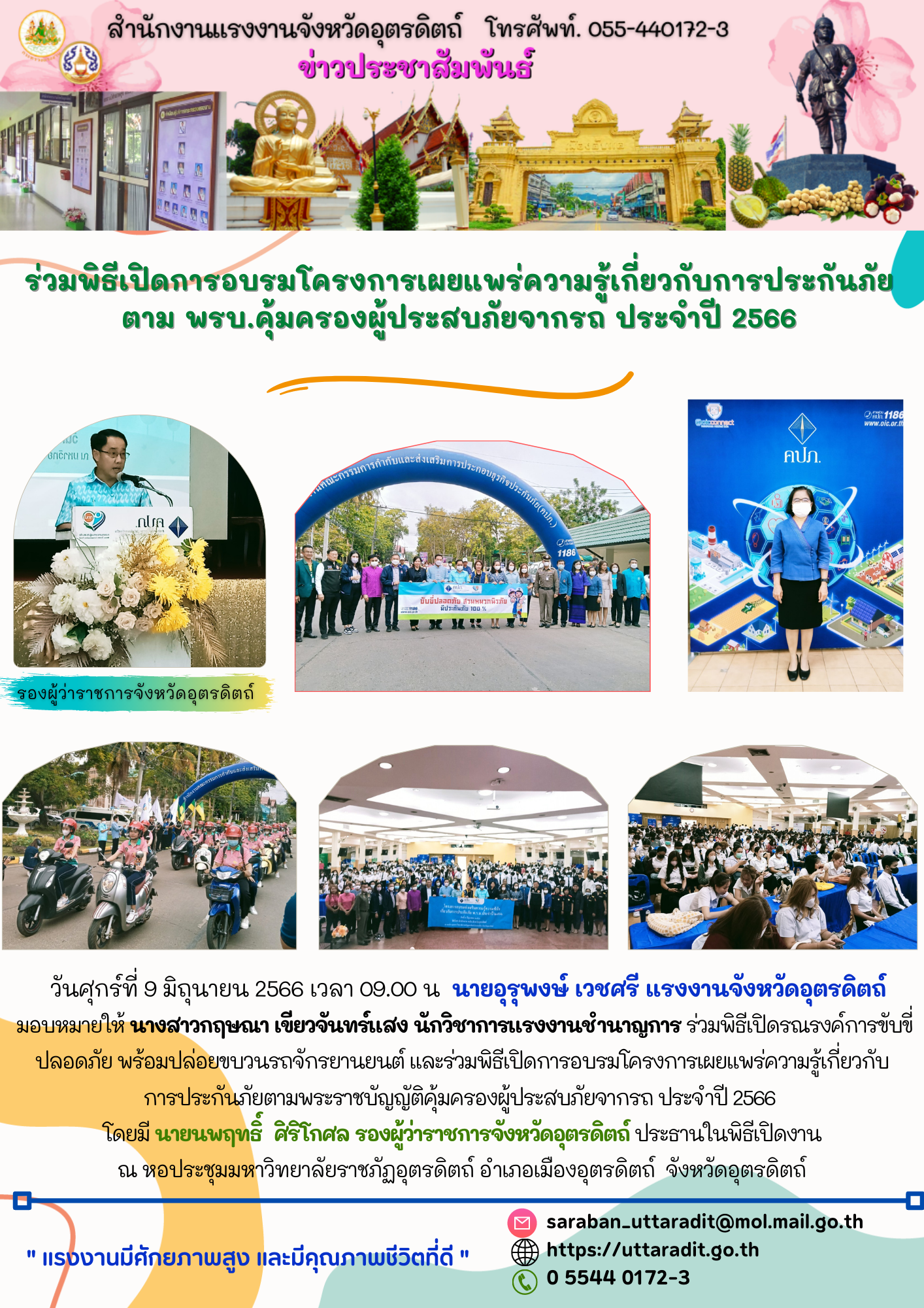 สรจ.อต. ร่วมพิธีเปิดการอบรมโครงการเผยแพร่ความรู้เกี่ยวกับการประกันภัยตาม พรบ.คุ้มครองผู้ประสบภัยจากรถ ประจำปี 2566