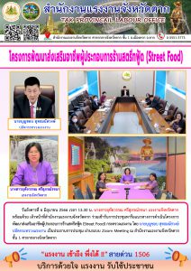 สรจ.สุโขทัย การประชุมหารือแนวทางการดำเนินโครงการพัฒนาส่งเสริมอาชีพผู้ประกอบการร้านสตรีทฟู้ด (Street Food) กระทรวงแรงงาน