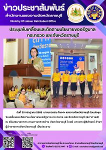 แรงงานจังหวัดราชบุรี ร่วมประชุมขับเคลื่อนและติดตามนโยบายของรัฐบาล กระทรวง และจังหวัดราชบุรี