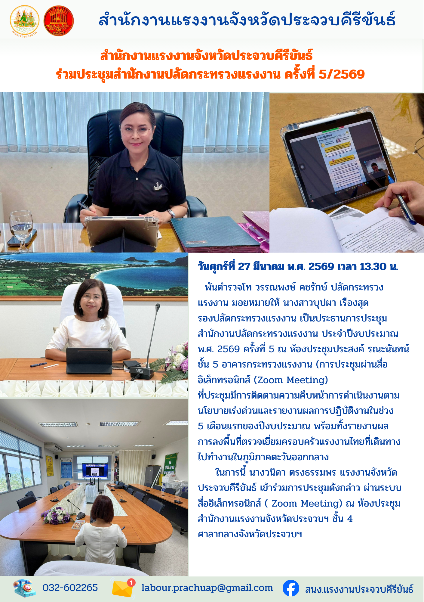 สำนักงานแรงงานจังหวัดประจวบคีรีขันธ์ ร่วมประชุมสำนักงานปลัดกระทรวงแรงงาน ครั้งที่ 5/2569