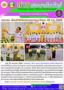 ปลัดกระทรวงแรงงาน ร่วมพิธี เจริญพระพุทธมนต์ ทำบุญตักบาตร และถวายสัตย์ปฏิญาณฯ เนื่องในโอกาสวันเฉลิมพระชนมพรรษาพระบาทสมเด็จพระเจ้าอยู่หัว 28 กรกฎาคม 2568