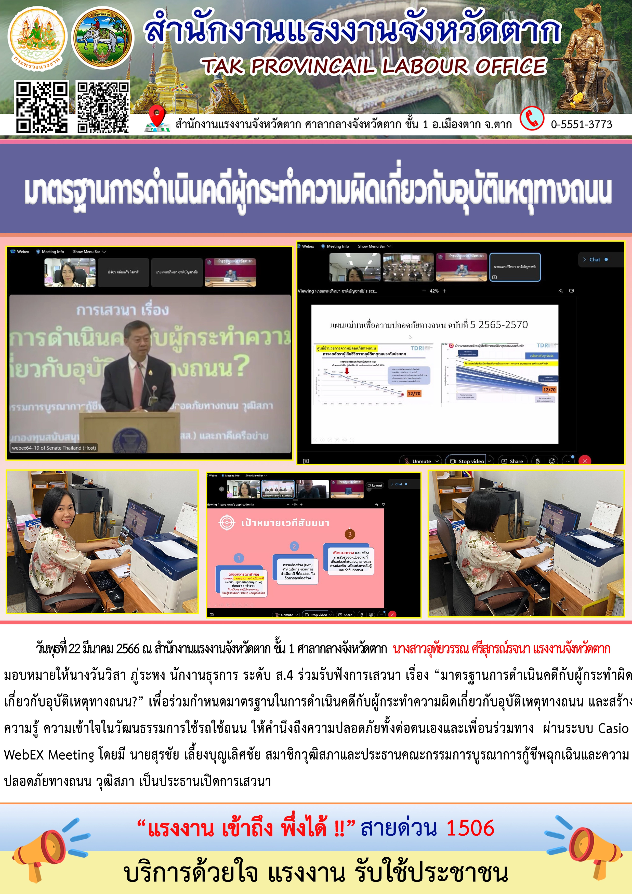 สรจ.ตาก มาตรฐานการดำเนินคดีผู้กระทำความผิดเกี่ยวกับอุบัติเหตุทางถนน