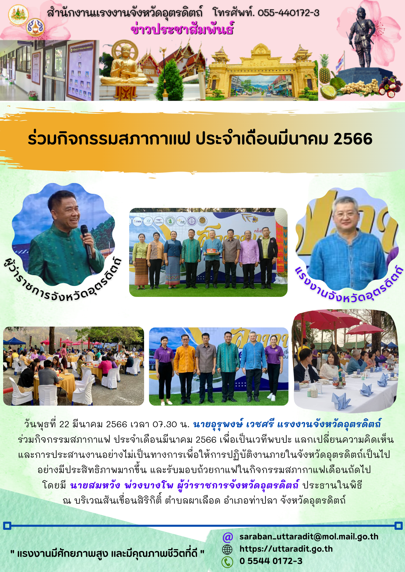 แรงงานจังหวัดอุตรดิตถ์ ร่วมกิจกรรมสภากาแฟประจำเดือนมีนาคม 2566