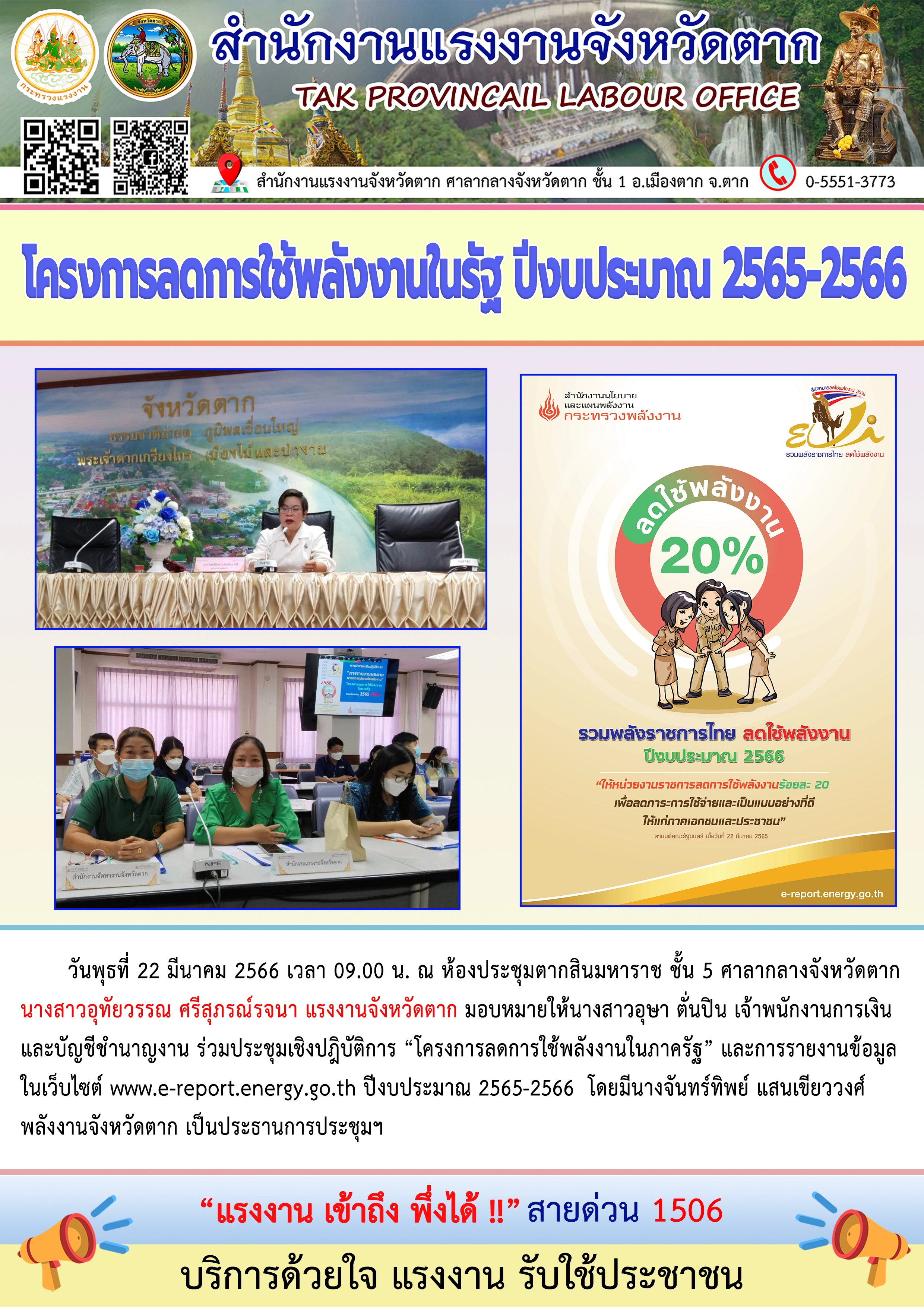 สรจ.ตาก โครงการลดการใช้พลังงานในรัฐ ปีงบประมาณ 2565-2566