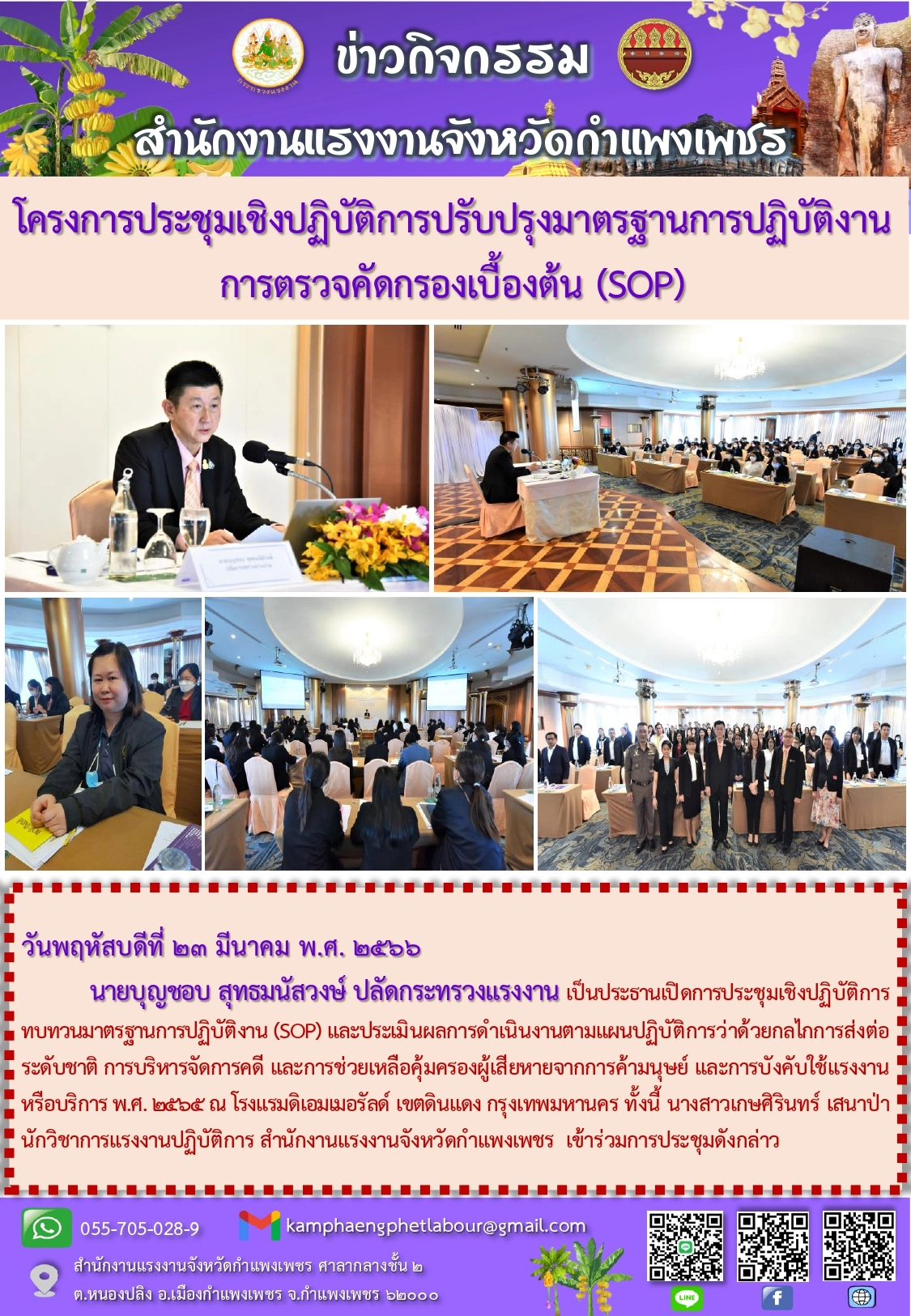สรจ.กำแพงเพชร โครงการประชุมเชิงปฏิบัติการปรับปรุงมาตรฐานการปฏิบัติงานการตรวจคัดกรองเบื้องต้น (SOP)