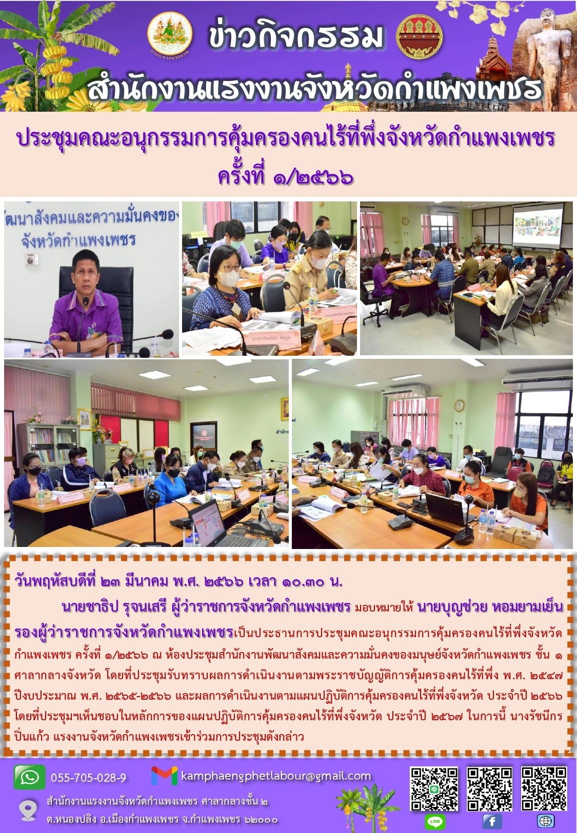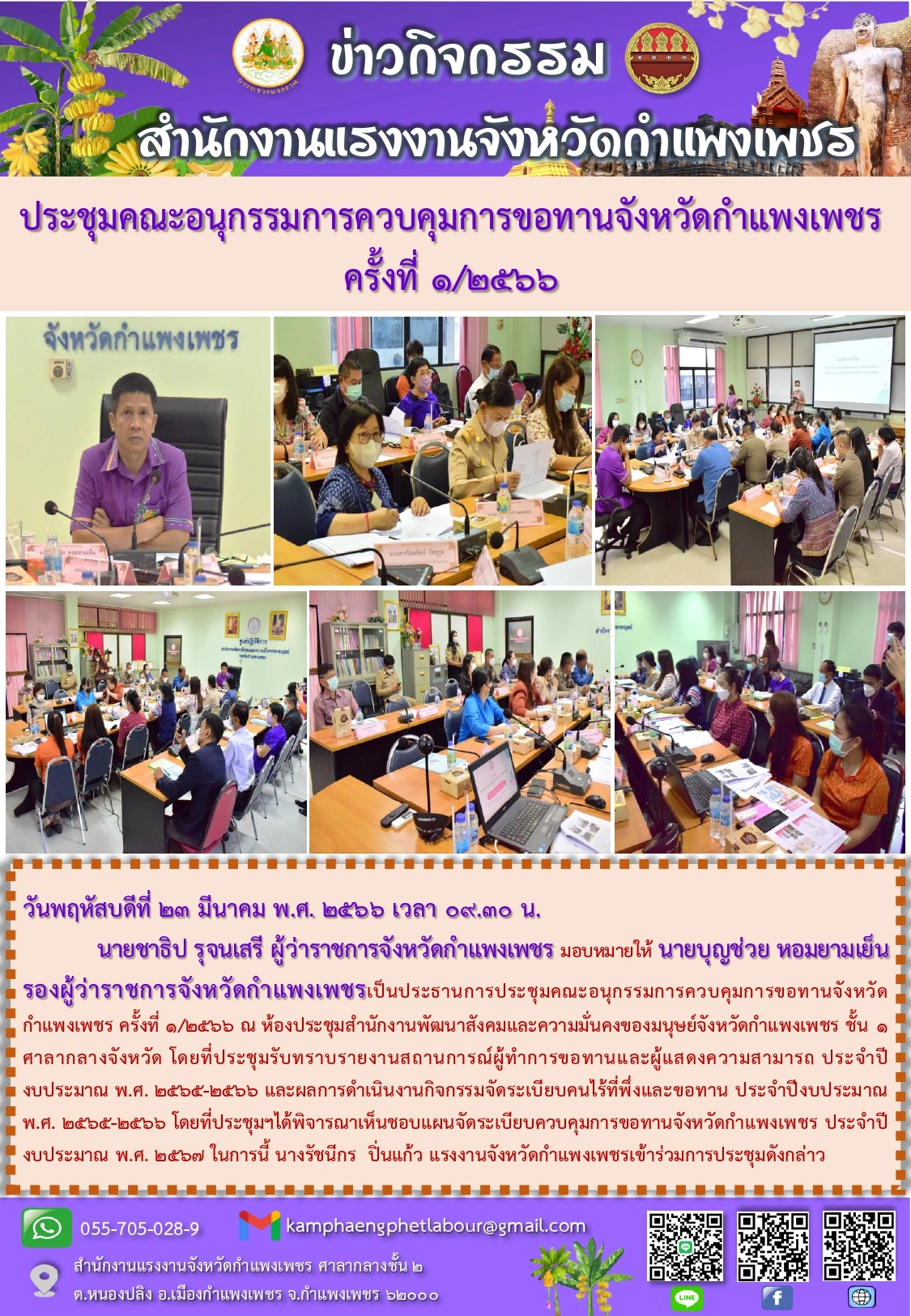 สรจ.กำแพงเพชร ประชุมคณะอนุกรรมการควบคุมการขอทานจังหวัดกำแพงเพชร ครั้งที่ 1/2566