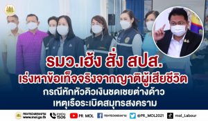รมว.เฮ้ง สั่ง สปส. เร่งหาข้อเท็จจริงจากญาติผู้เสียชีวิต กรณี หักหัวคิวเงินชดเชยต่างด้าว เหตุเรือระเบิดที่สมุทรสงคราม Labour Minister Assigns SSO to Investigate Facts from Relatives of Deceased Workers in People Taking Fees to Process Compensation for the Ship Explosion Incident in Samut Songkhram