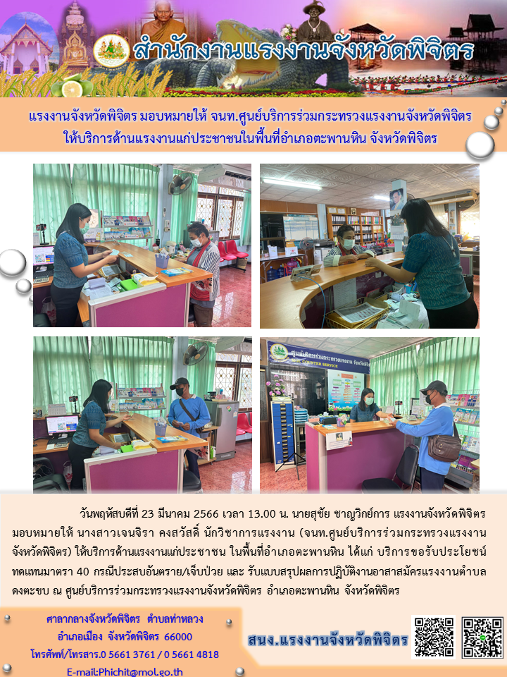 เจ้าหน้าที่ศูนย์บริการร่วมกระทรวงแรงงานจังหวัดพิจิตร ให้บริการด้านแรงงานแก่ประชาชน
