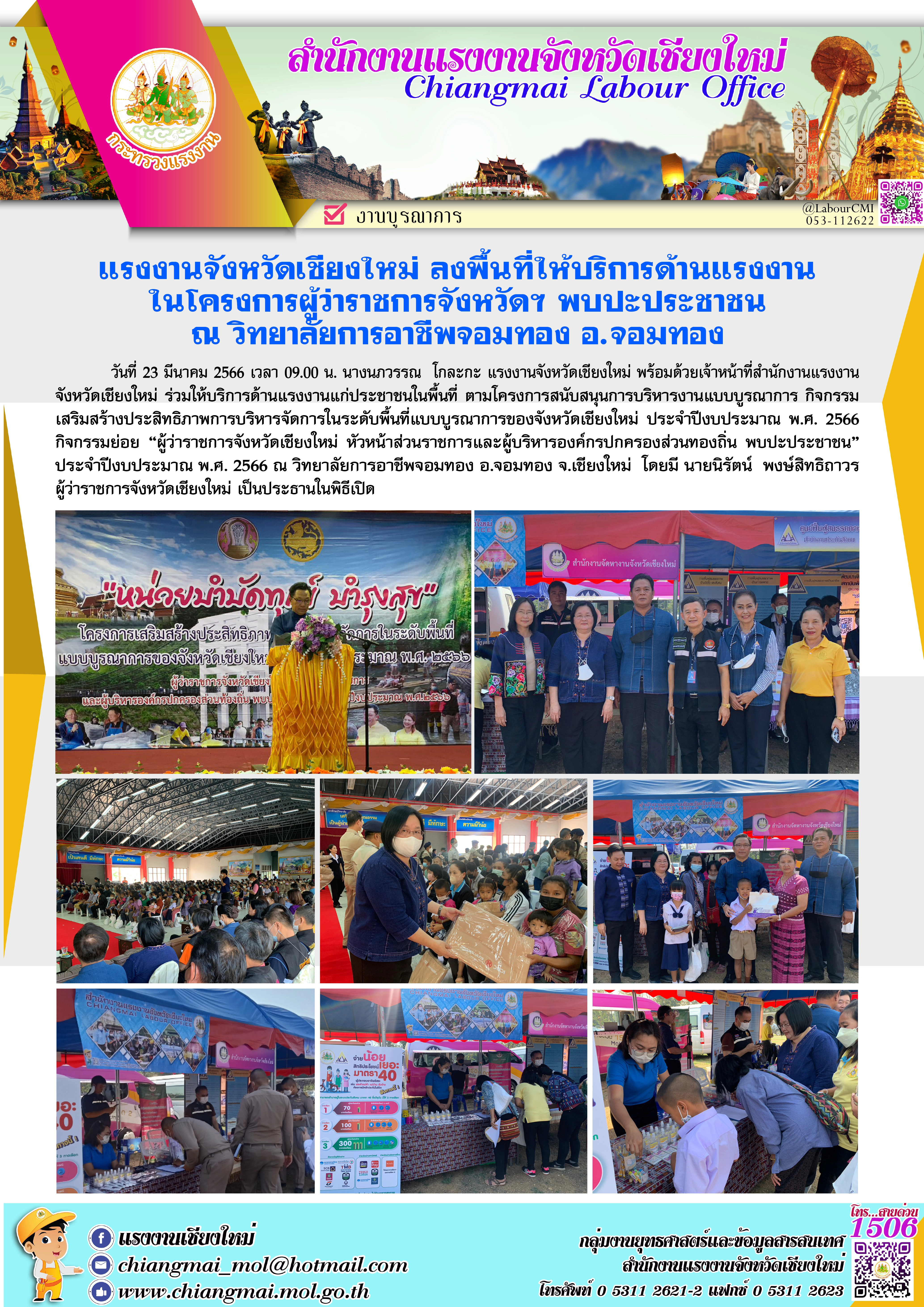 แรงงานจังหวัดเชียงใหม่ ลงพื้นที่ให้บริการด้านแรงงาน ในโครงการผู้ว่าราชการจังหวัดฯ พบปะประชาชน อ.จอมทอง