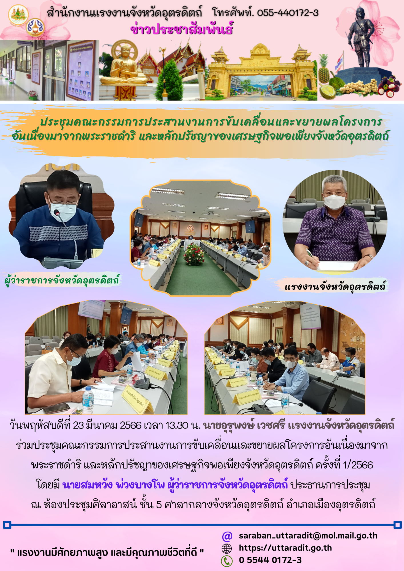 สรจ.อต. ประชุมคณะกรรมการประสานงานการขับเคลื่อนและขยายผลโครงการอันเนื่องมาจากพระราชดำริ และหลักปรัชญาของเศรษฐกิจพอเพียงจังหวัดอุตรดิตถ์