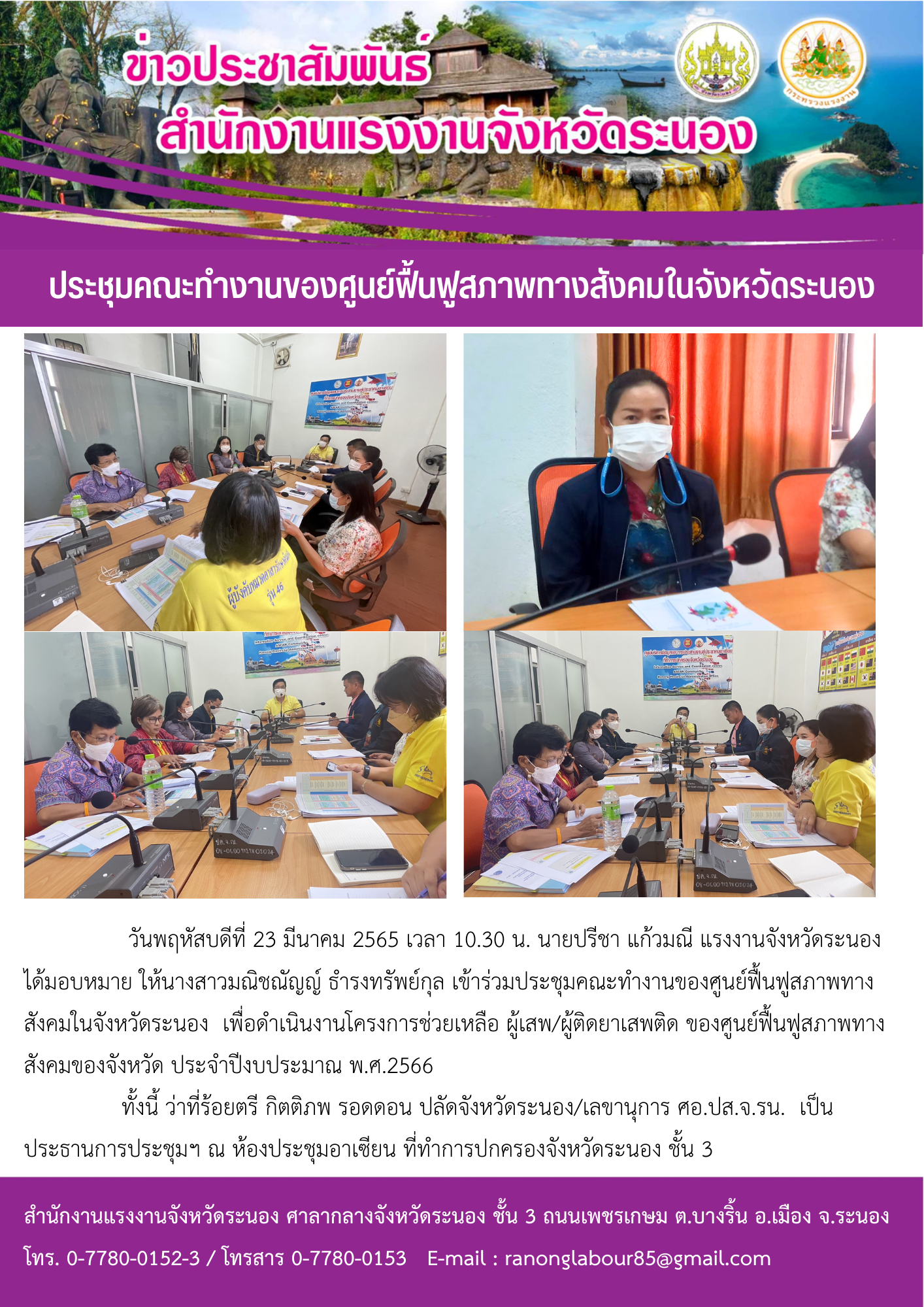 สรจ.ระนอง ประชุมคณะทำงานของศูนย์ฟื้นฟูสภาพทางสังคมในจังหวัดระนอง