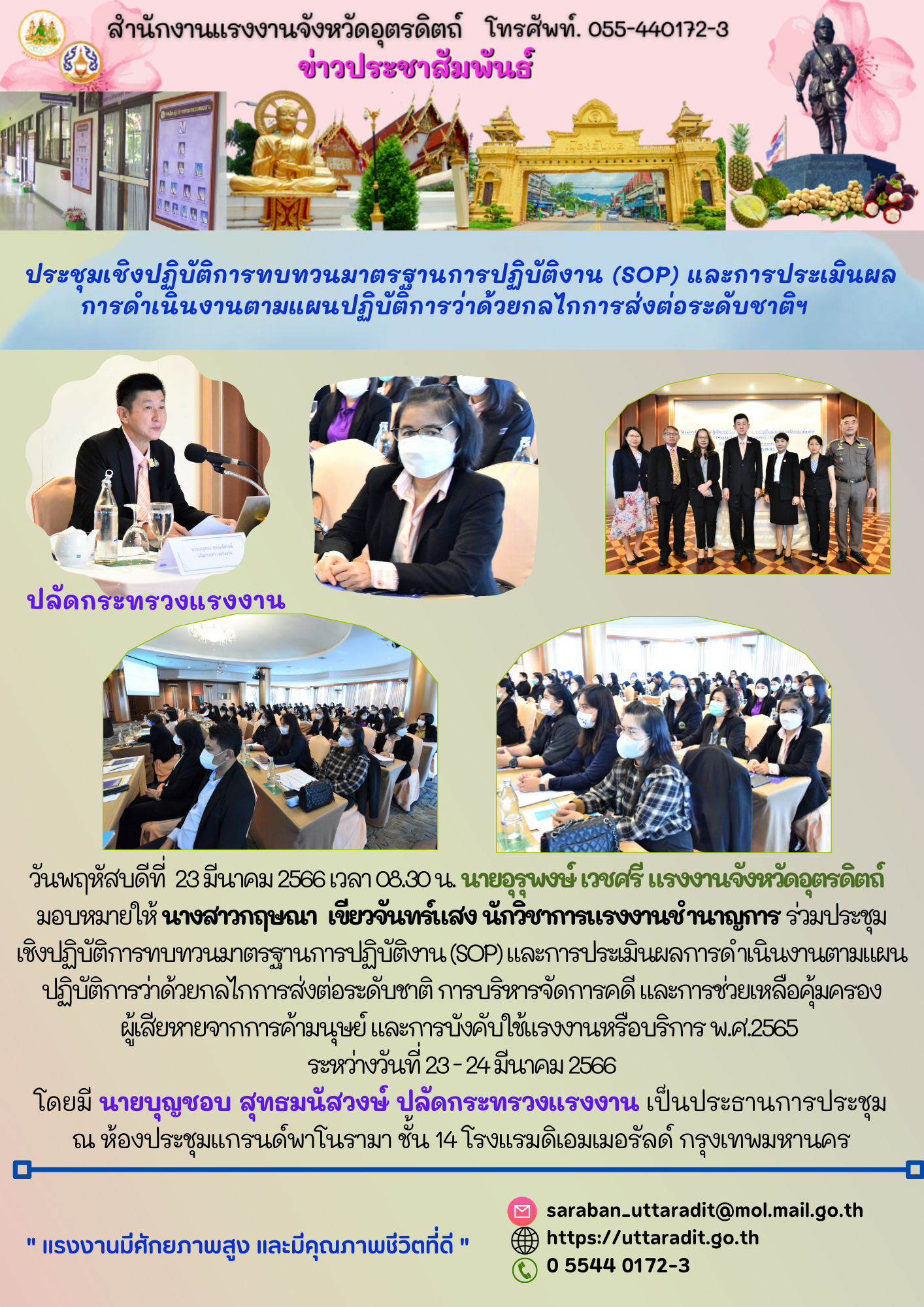 สรจ.อต. ร่วมประชุมเชิงปฏิบัติการทบทวนมาตรฐานการปฏิบัติงาน (SOP) และการประเมินผลการดำเนินงานตามแผนปฏิบัติการว่าด้วยกลไกการส่งต่อระดับชาติ การบริหารจัดการคดี และการช่วยเหลือคุ้มครองผู้เสียหายจากการค้ามนุษย์ และการบังคับใช้แรงงานหรือบริการ พ.ศ.2565
