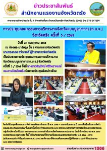 แรงงานจังหวัดตรัง ร่วมการประชุมคณะกรรมการบริหารงานจังหวัดแบบบูรณาการ (ก.บ.จ.) จังหวัดตรัง ครั้งที่ 3/2568