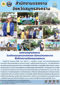 แรงงานสมุทรสงคราม ร่วมกิจกรรมลงแขกลงคลอง เมืองแม่กลองสะอาด พื้นที่เทศบาลเมืองสมุทรสงคราม