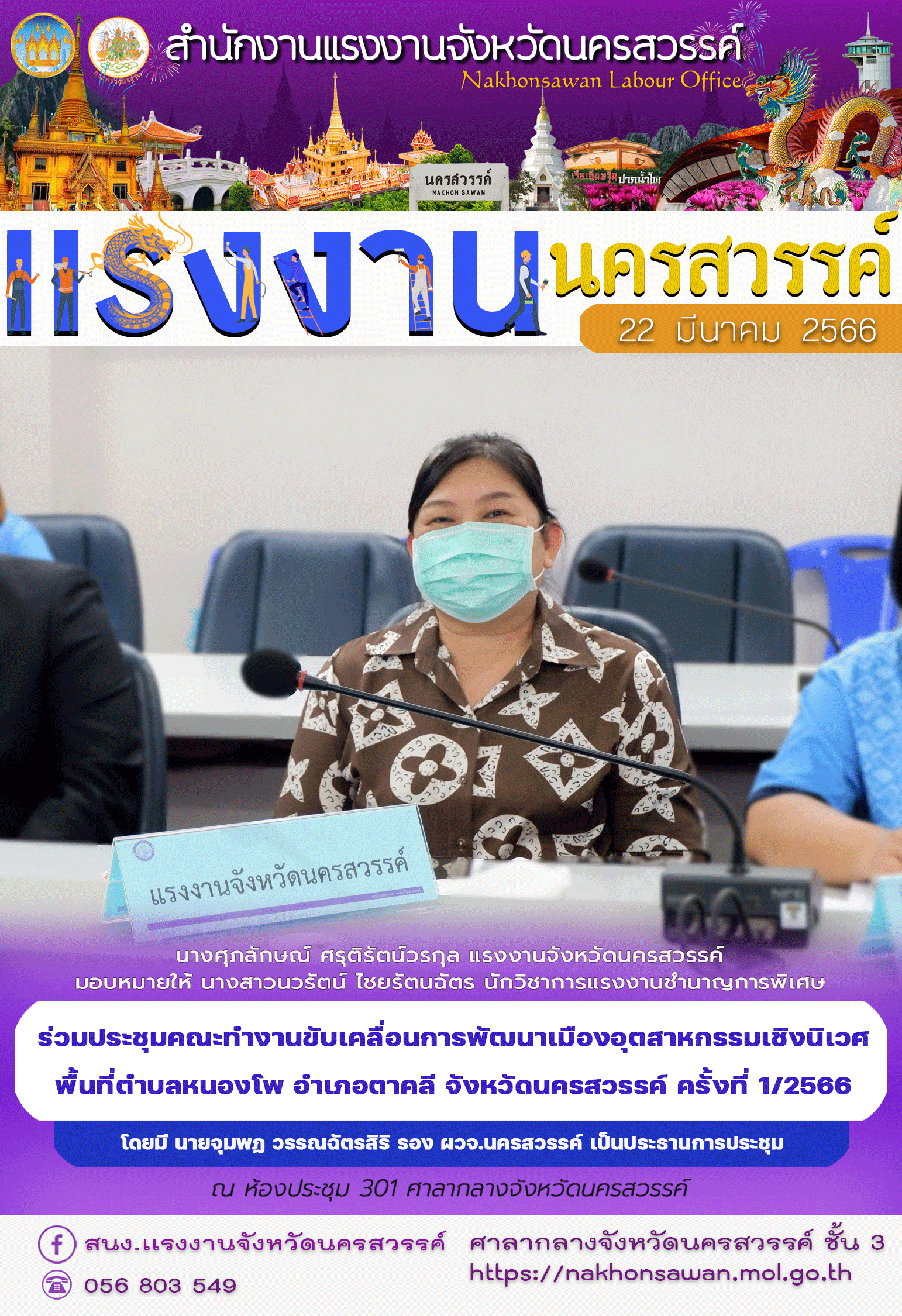 สรจ.นครสวรรค์ มอบหมายให้ นางสาวนวรัตน์ ไชยรัตนฉัตร นักวิชาการแรงงานชำนาญการพิเศษ ร่วมประชุมคณะทำงานขับเคลื่อนการพัฒนาเมืองอุตสาหกรรมเชิงนิเวศ พื้นที่ตำบลหนองโพ อำเภอตาคลี จังหวัดนครสวรรค์ ครั้งที่ 1/2566