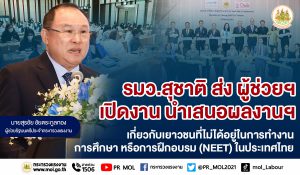 รมว.สุชาติ ส่ง ผู้ช่วยฯ เปิดงานนำเสนอผลงานวิจัยเชิงลึกเกี่ยวกับเยาวชนที่ไม่ได้อยู่ในการทำงาน การศึกษา หรือการฝึกอบรม (NEET) ในประเทศไทย Labour Minister Assigns Advisor to Commence Presentation of Results from the In-Depth Research on Youths Not in Education, Employment or Training (NEET) in Thailand