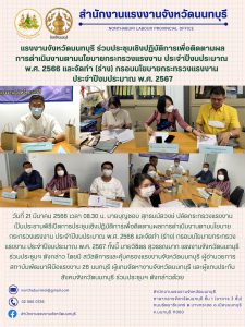 แรงงานจังหวัดนนทบุรี ร่วมประชุมเชิงปฏิบัติการเพื่อติดตามผลการดำเนินงานตามนโยบายกระทรวงแรงงาน ประจำปีงบประมาณ พ.ศ. 2566 และจัดทำ (ร่าง) กรอบนโยบายกระทรวงแรงงาน ประจำปีงบประมาณ พ.ศ. 2567