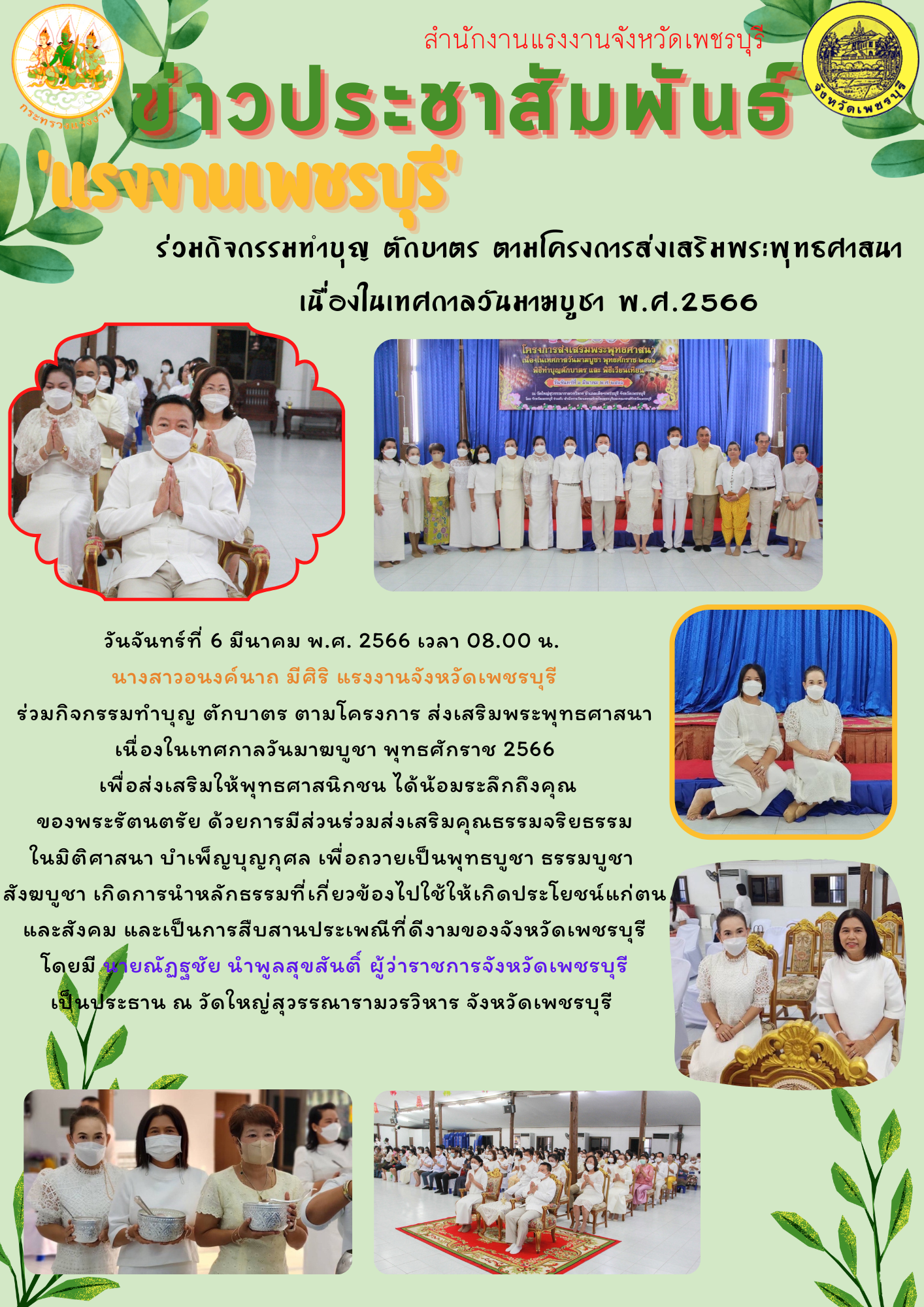 สรจ.เพชรบุรี ร่วมกิจกรรมทำบุญ ตักบาตร ตามโครงการส่งเสริมพระพุทธศาสนา เนื่องในเทศกาลวันมาฆบูชา พ.ศ.2566