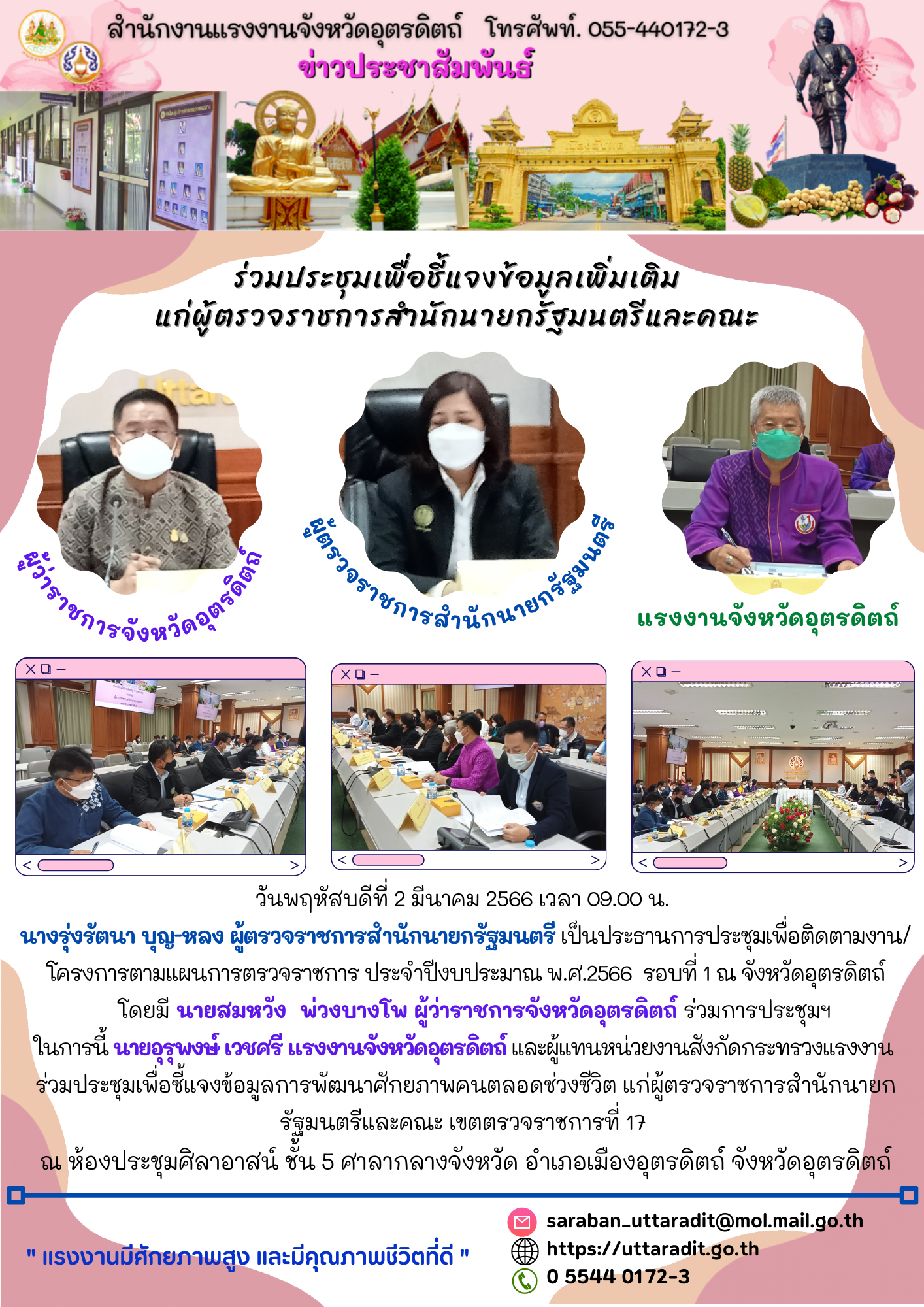 แรงงานนครพนม ร่วมประชุมการตรวจราชการตามแผนตรวจราชการแบบบูรณาการของผู้ตรวจราชการสำนักนายกรัฐมนตรี เขตตรวจราชการที่ 11 ประจำปีงบประมาณ พ.ศ. 2566 รอบที่ 1