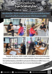 สรจ.พิษณุโลก ให้บริการปรึกษาเเนะนำเพื่อติดตามสิทธิประโยชน์ เเรงงานไทยที่ไปทำงานต่างประเทศ (ไต้หวันและเกาหลีใต้)
