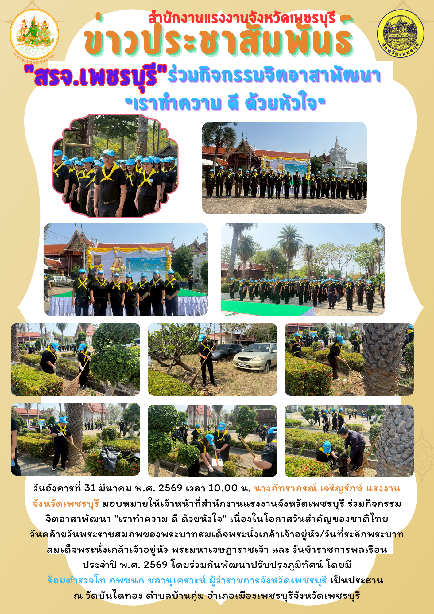 “สรจ.เพชรบุรี” ร่วมกิจกรรมจิตอาสาพัฒนา “เราทำความ ดี ด้วยหัวใจ”