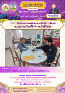 สำนักงานแรงงานจังหวัดมุกดาหาร ให้บริการรับยื่นเอกสารเพื่อติดตามสิทธิประโยชน์ของแรงงานไทยที่ไปทำงานในไต้หวัน