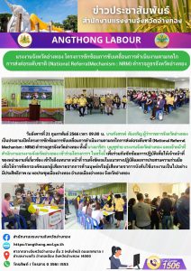 แรงงานจังหวัดอ่างทอง โครงการซักซ้อมการขับเคลื่อนการดำเนินงานตามกลไก การส่งต่อระดับชาติ (National ReferralMechanism : NRM) ตำรวจภูธรจังหวัดอ่างทอง