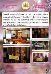 สรจ.เชียงราย ร่วมนำเสนอผลการดำเนินโครงการ TO BE NUMBER ONE จังหวัดเชียงราย