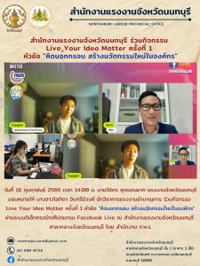 สำนักงานแรงงานจังหวัดนนทบุรี ร่วมกิจกรรม Live Your Idea Matter ครั้งที่ 1 หัวข้อ “คิดนอกกรอบ สร้างนวัตกรรมใหม่ในองค์กร”