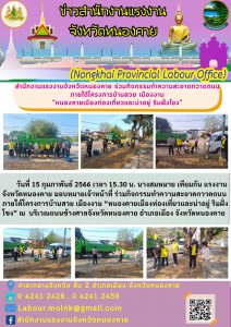 สำนักงานแรงงานจังหวัดหนองคาย ร่วมกิจกรรมทำความสะอาดกวาดถนน ภายใต้โครงการบ้านสวย เมืองงาม “หนองคายเมืองท่องเที่ยวและน่าอยู่ ริมฝั่งโขง”