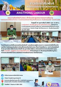 แรงงานจังหวัดอ่างทอง เข้าร่วมประชุมคณะกรรมการจัดงาน “มหกรรมของดีเมืองอ่างทอง งานมหกรรมกินปลาใหญ่ กินไข่นกกระทา กินผักปลอดภัย” ประจำปี 2566