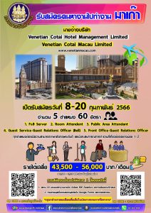 กรมการจัดหางาน รับสมัครคนหางานไปทำงานมาเก๊า