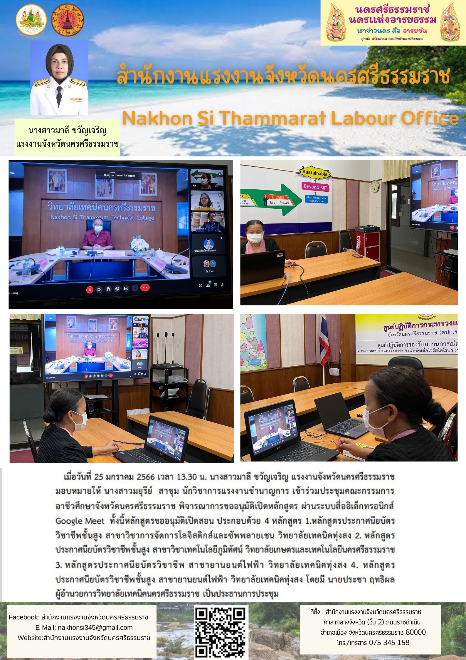 สรจ.นครศรีธรรมราช เข้าร่วมประชุมคณะกรรมการอาชีวศึกษาจังหวัดนครศรีธรรมราช พิจารณาการขออนุมัติเปิดหลักสูตร ผ่านระบบสื่ออิเล็กทรอนิกส์ Google Meet