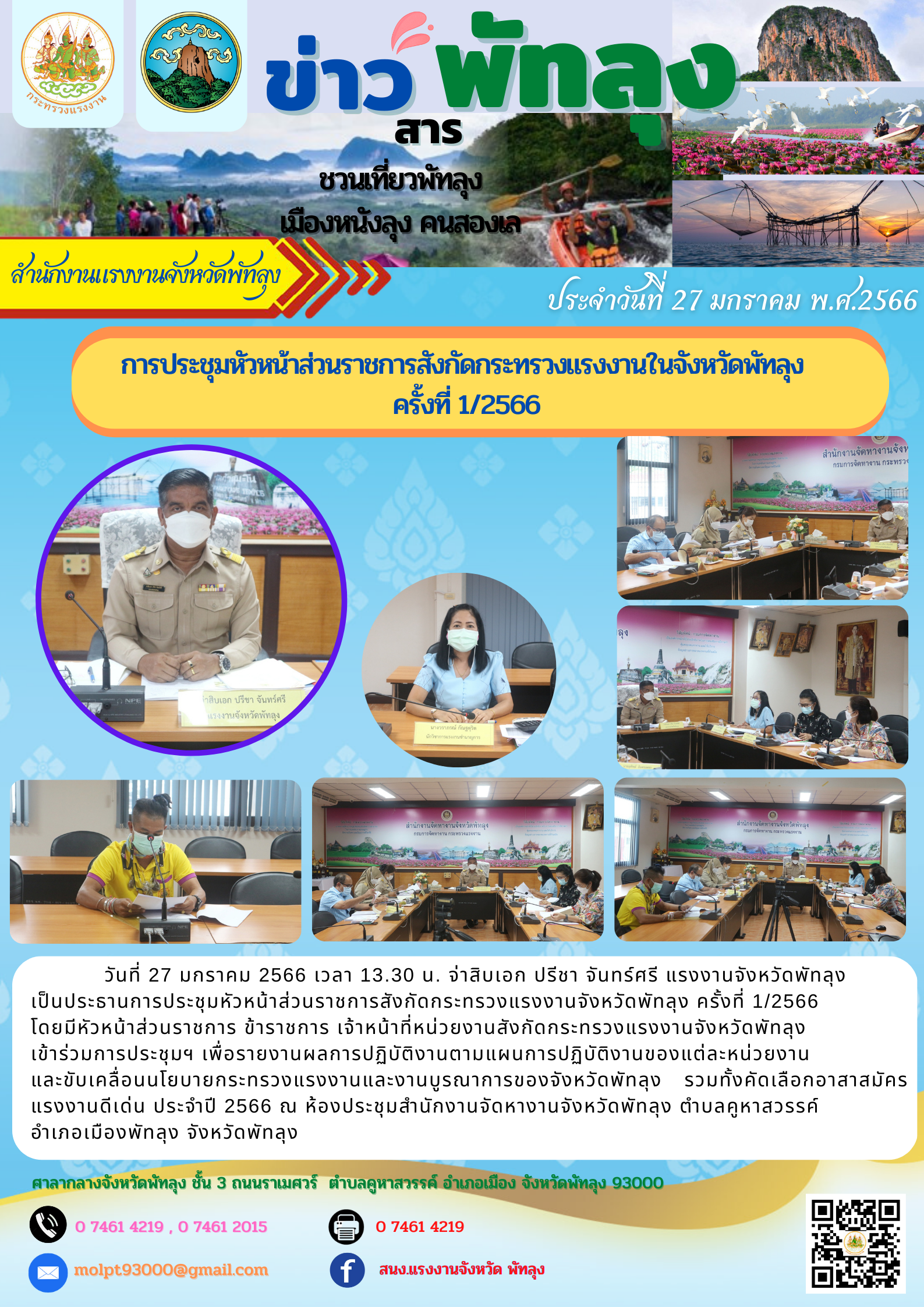 การประชุมหัวหน้าส่วนราชการสังกัดกระทรวงแรงงานในจังหวัดพัทลุง ครั้งที่ 1/2566