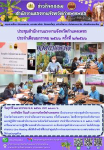 ประชุมสำนักงานแรงงานจังหวัดกำแพงเพชร ประจำเดือนมกราคม 2566 ครั้งที่ 2/2566